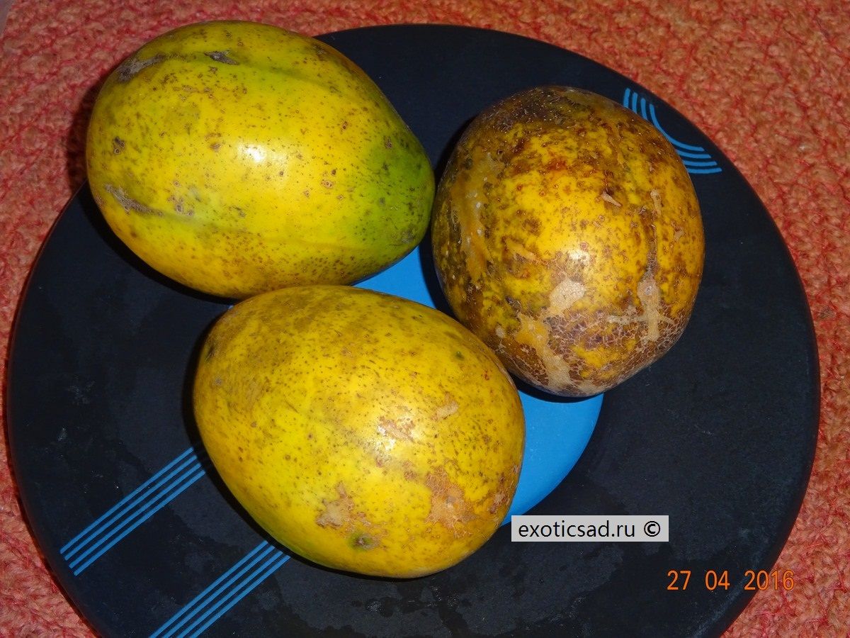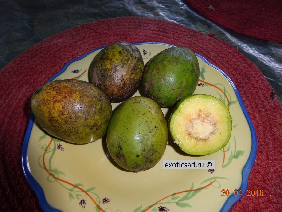 Зрелые плоды золотисто-жёлтого цвета, с хрустящей, сочной, ароматной мякотью кисло-сладкого вкуса, с твёрдой, колючей косточкой.