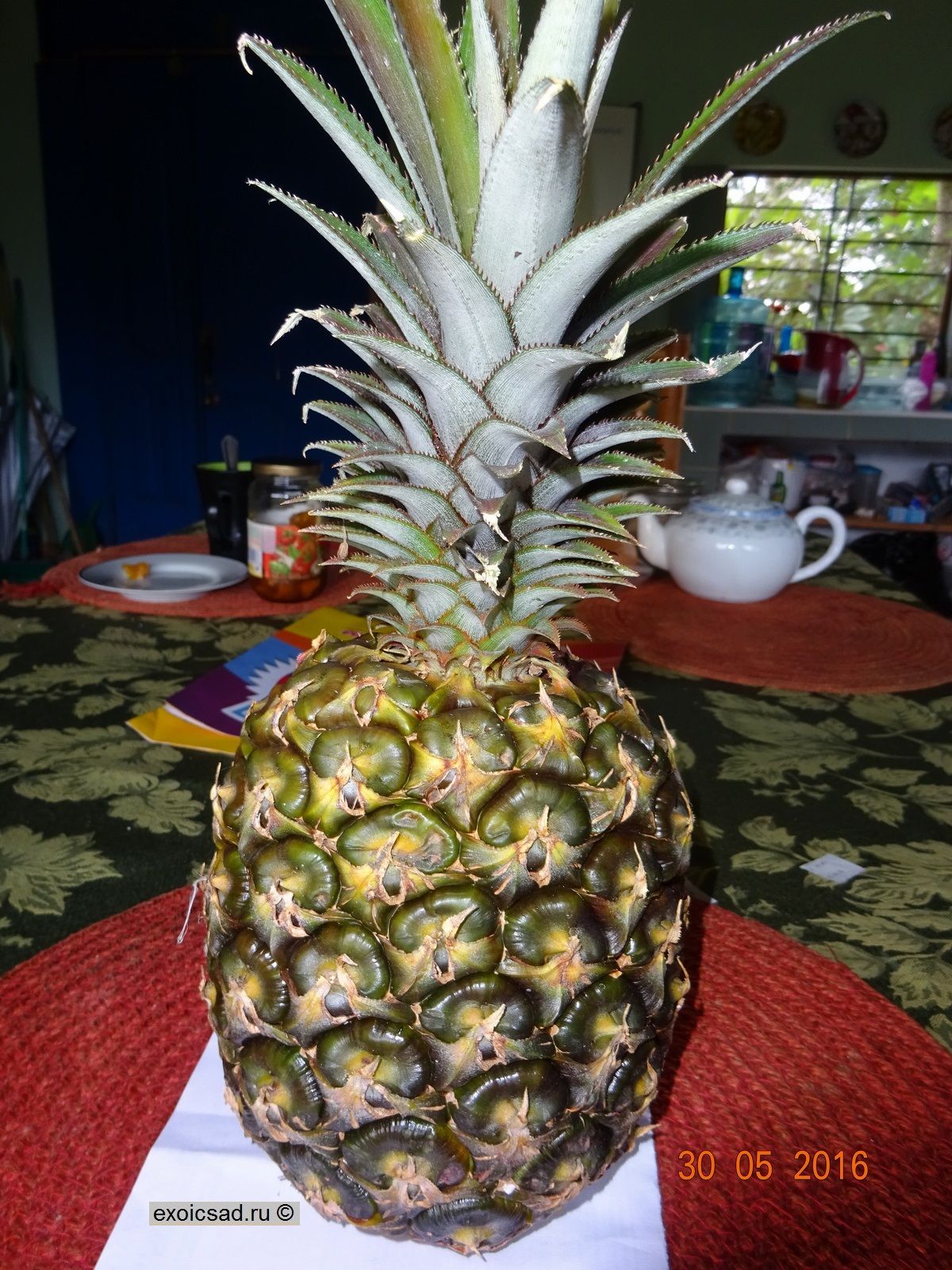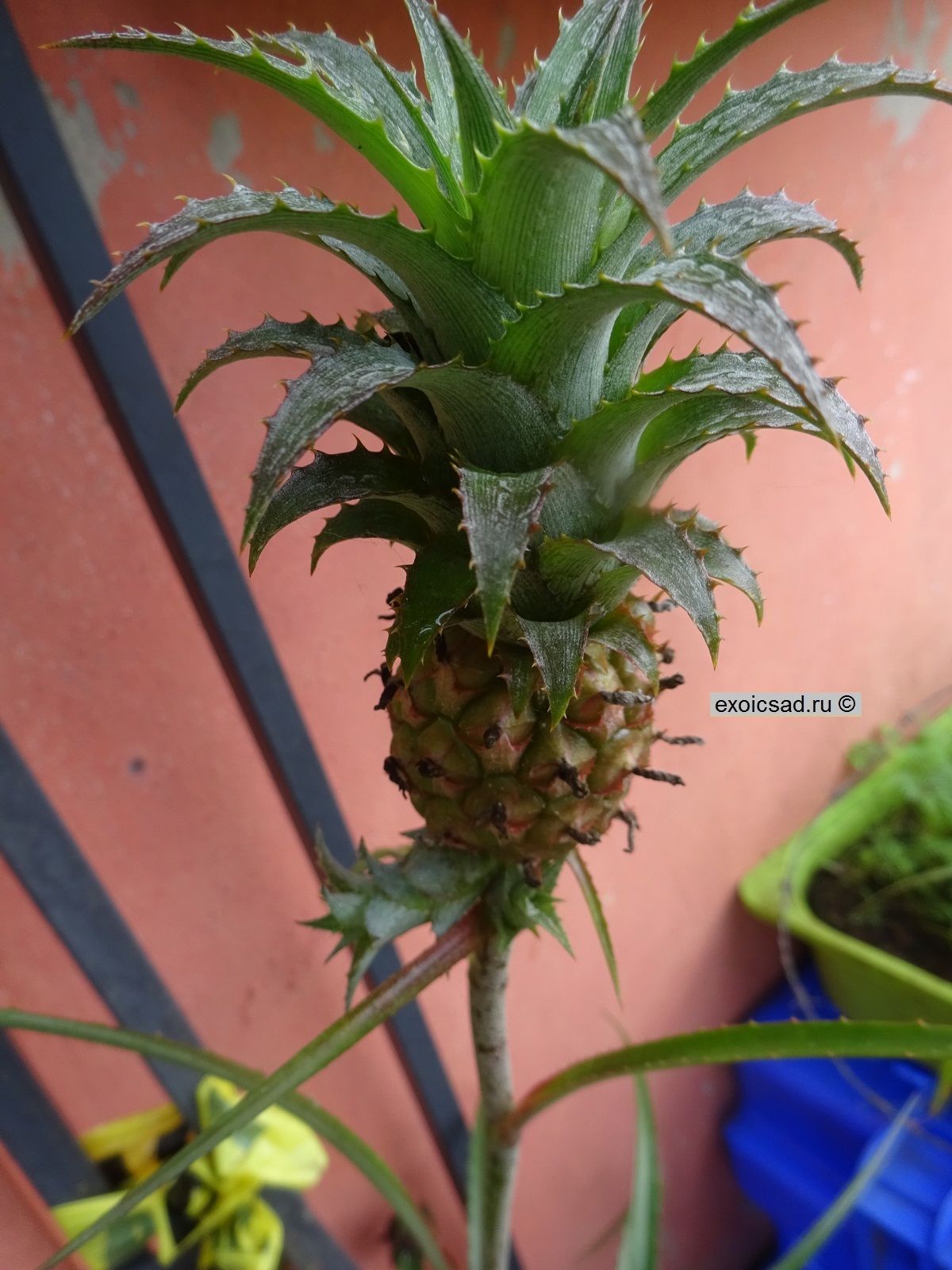Чем более развитым вырастет куст - тем крупнее образуется цветонос и соплодие. искусственного опыления ананасу не требуется.