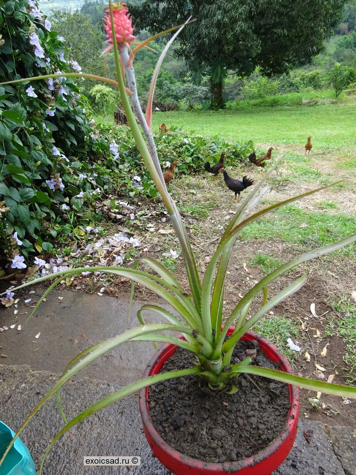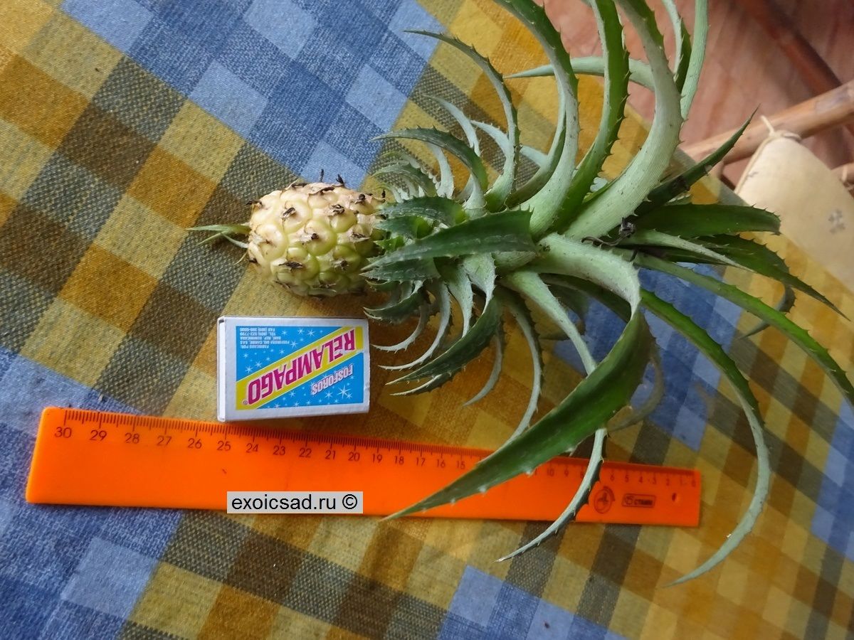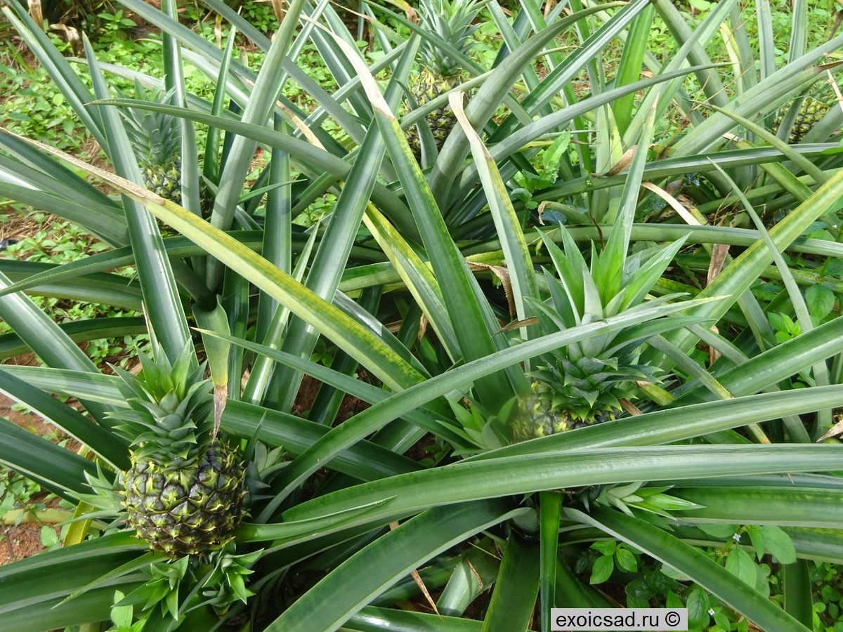 Размножается ананас "хохолком" плода, отростками с коронки плода и боковыми или корневыми пасынками куста.