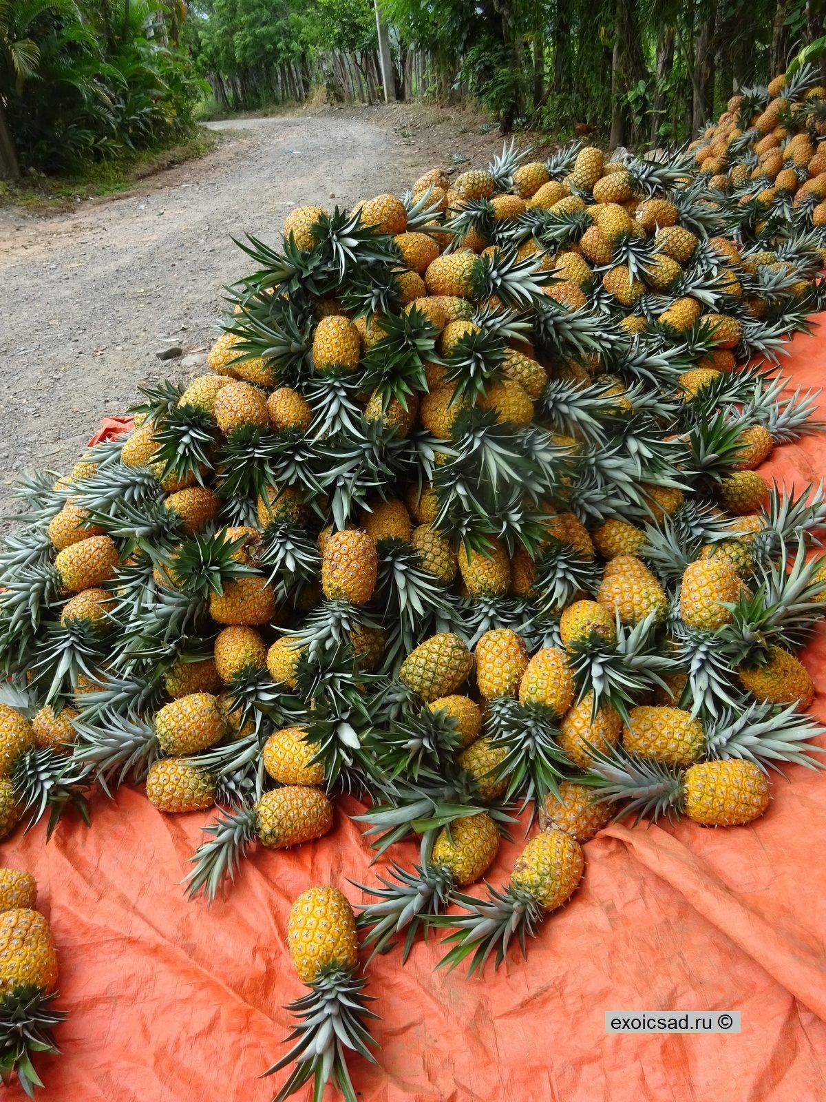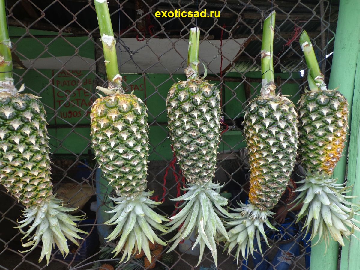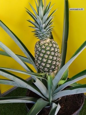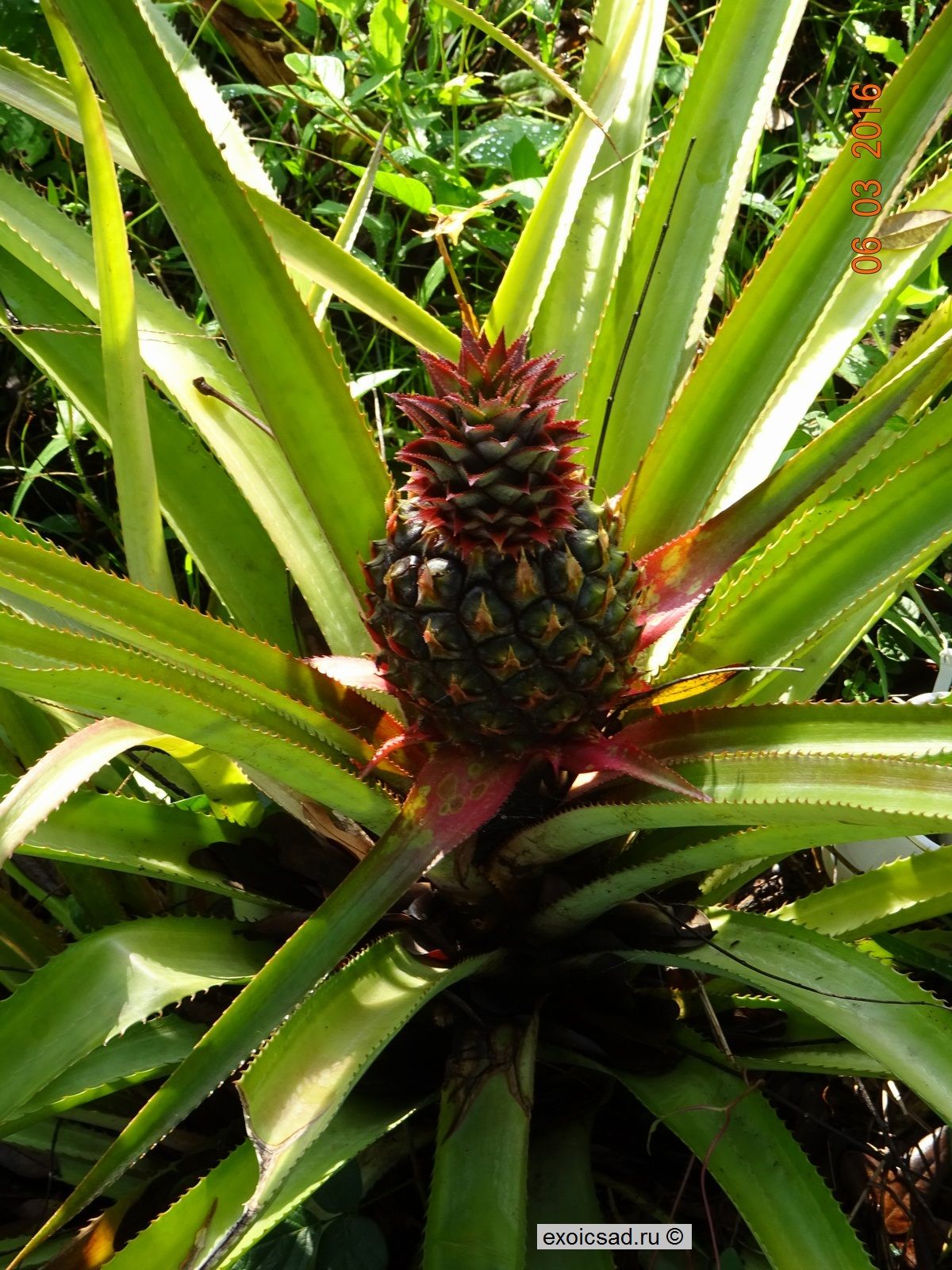 Размножается ананас "хохолком" плода, отростками с коронки плода и боковыми или корневыми пасынками куста.