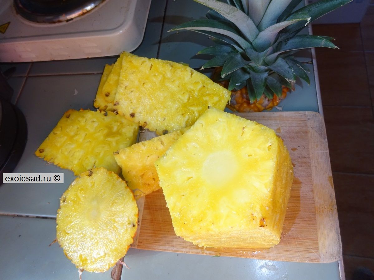 Плоды ананаса сочные, имеют приятный кисло-сладкий вкус и сильный своеобразный аромат.
