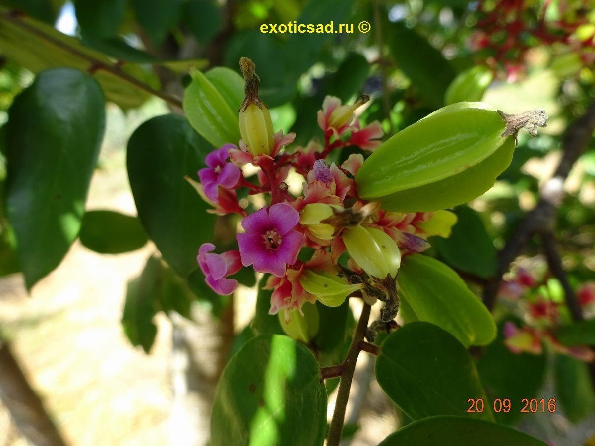 Дерево карамболы невысокое, листья акациевидные, до 50 см длиной. Цветки в кистях, розово-пурпурные.