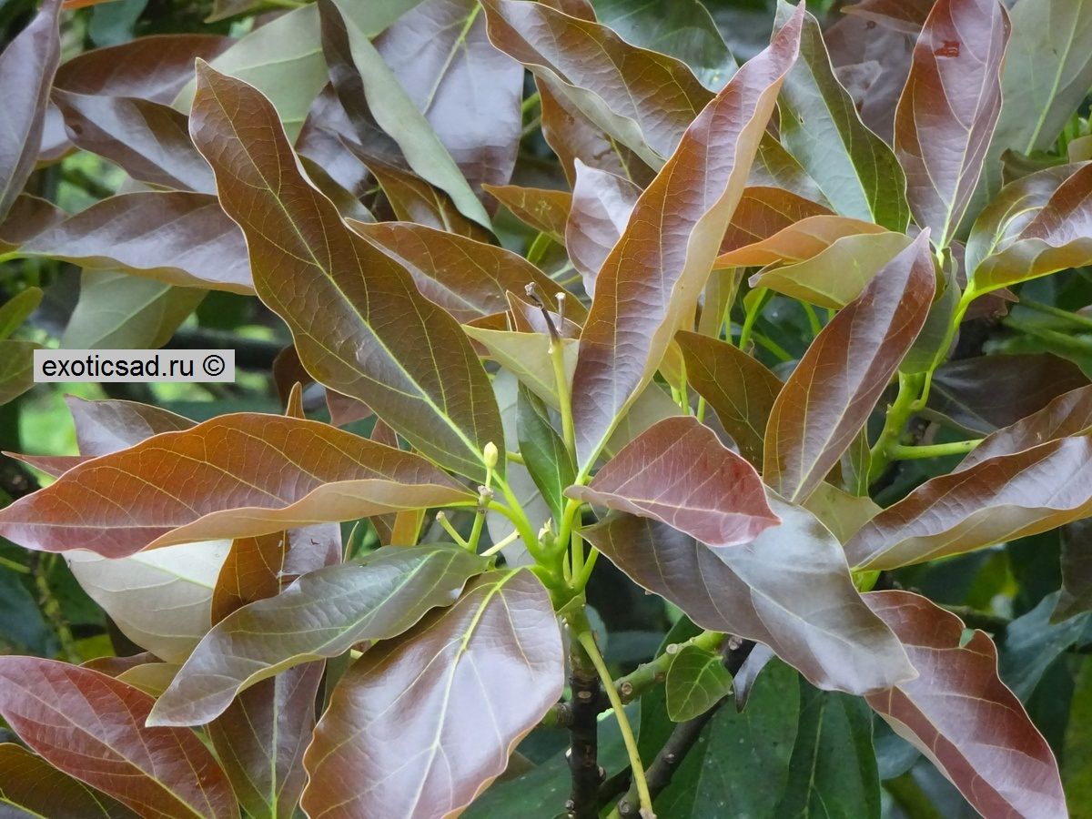 Молодые красные листья авокадо.