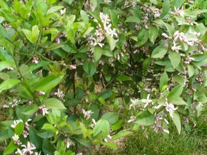 Деревце лимона имеет широко-овальную крону, побеги с колючками, кожистые листья, с запахом лимона, ароматные цветки в не больших кистях.
