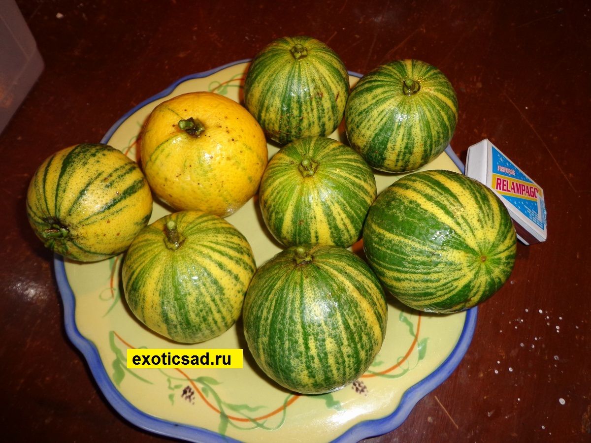 Плоды - многогнёздные, многосемянные, с толстой кожурой, оранжевого цвета, очень ароматные, сочные, сладкие, с кислинкой.