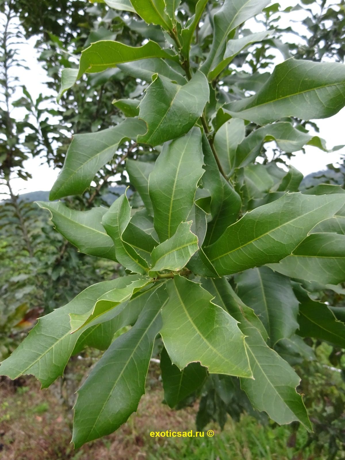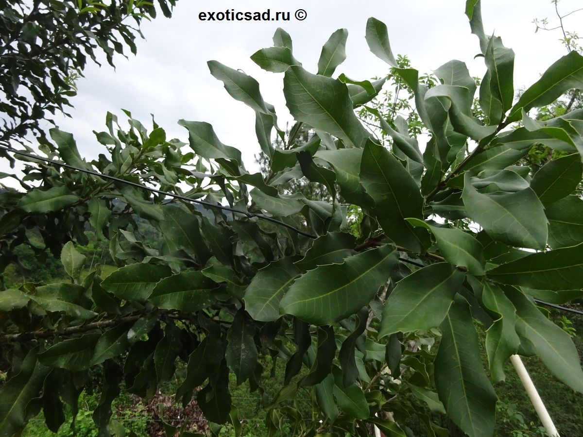 Деревце макадамии имеет гладкие, кожистые листья продолговато-эллиптической формы, с зазубринами по краям.