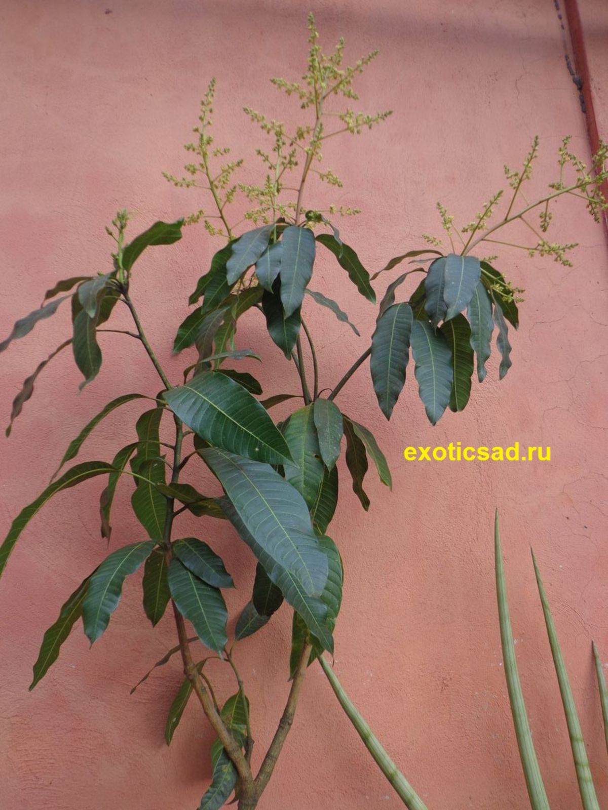 Деревце манго растёт быстро, а привитые саженцы часто зацветают уже на второй год жизни. Однако оставлять соцветия на молодом деревце следует только на 3-4 год.