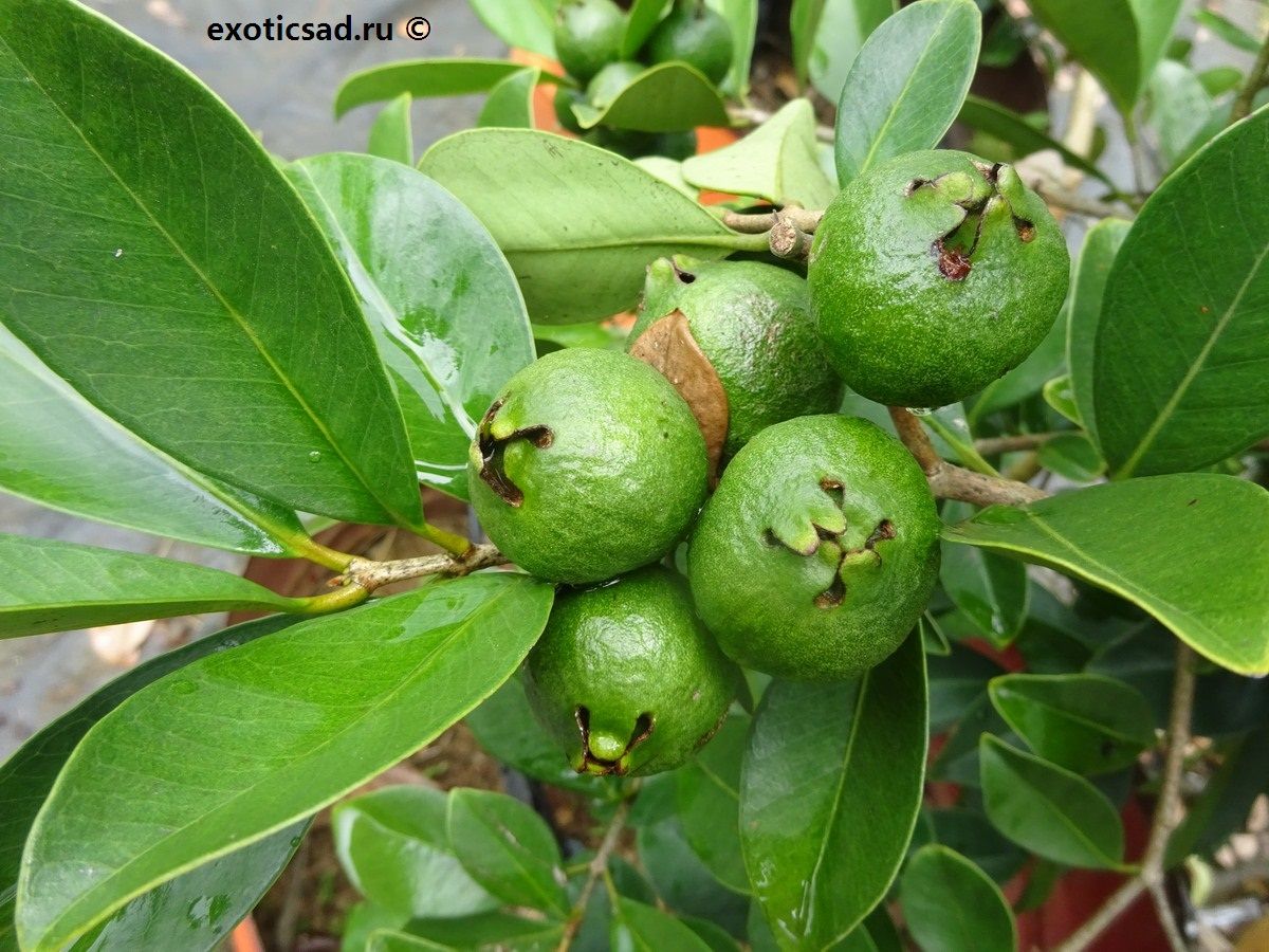 Цветение и плодоношение гуавы земляничной начинается в 3-4х летнем возрасте.