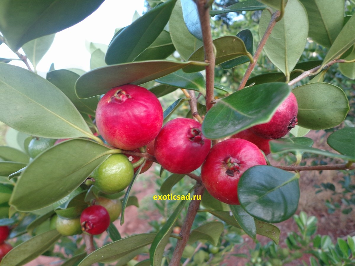 Гуава земляничная - небольшое, вечнозелёное дерево или кустарник, семейства Миртовые. Родина - Восточная Бразилия.