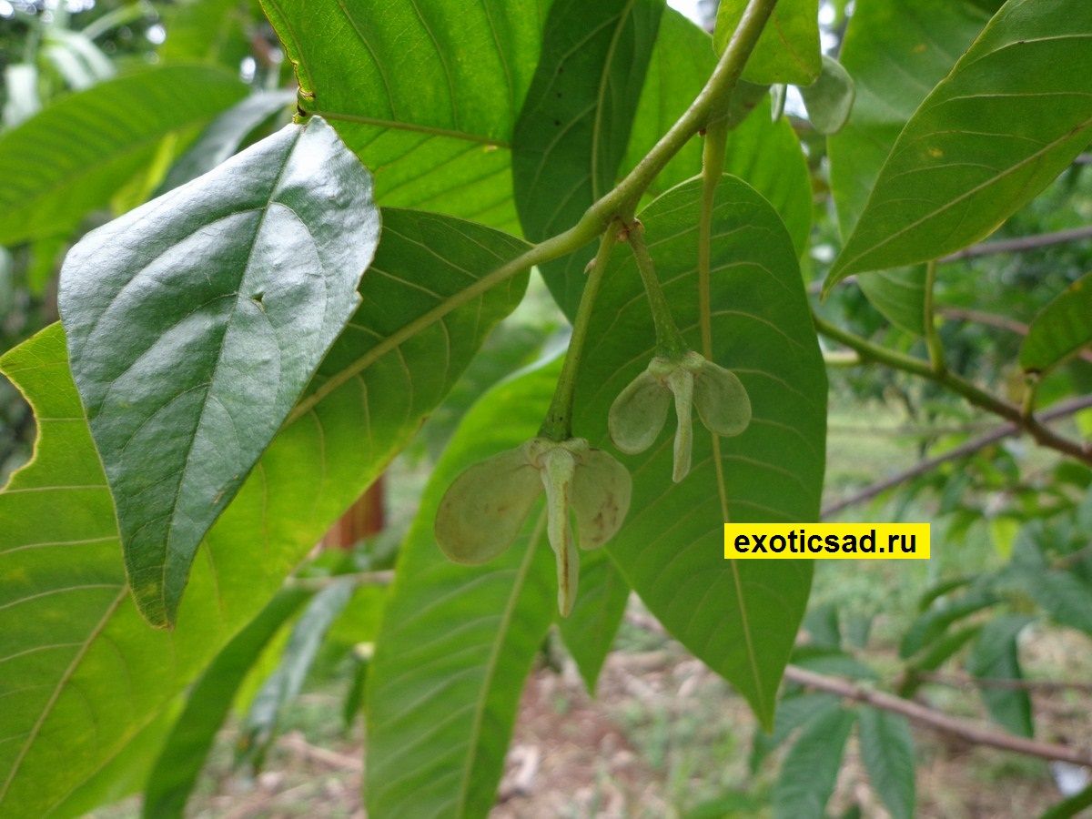 Роллиния слизистая - сравнительно небольшое дерево, с удлинённо-овальными листьями с выраженным жилкованием 10-25 см длиной.