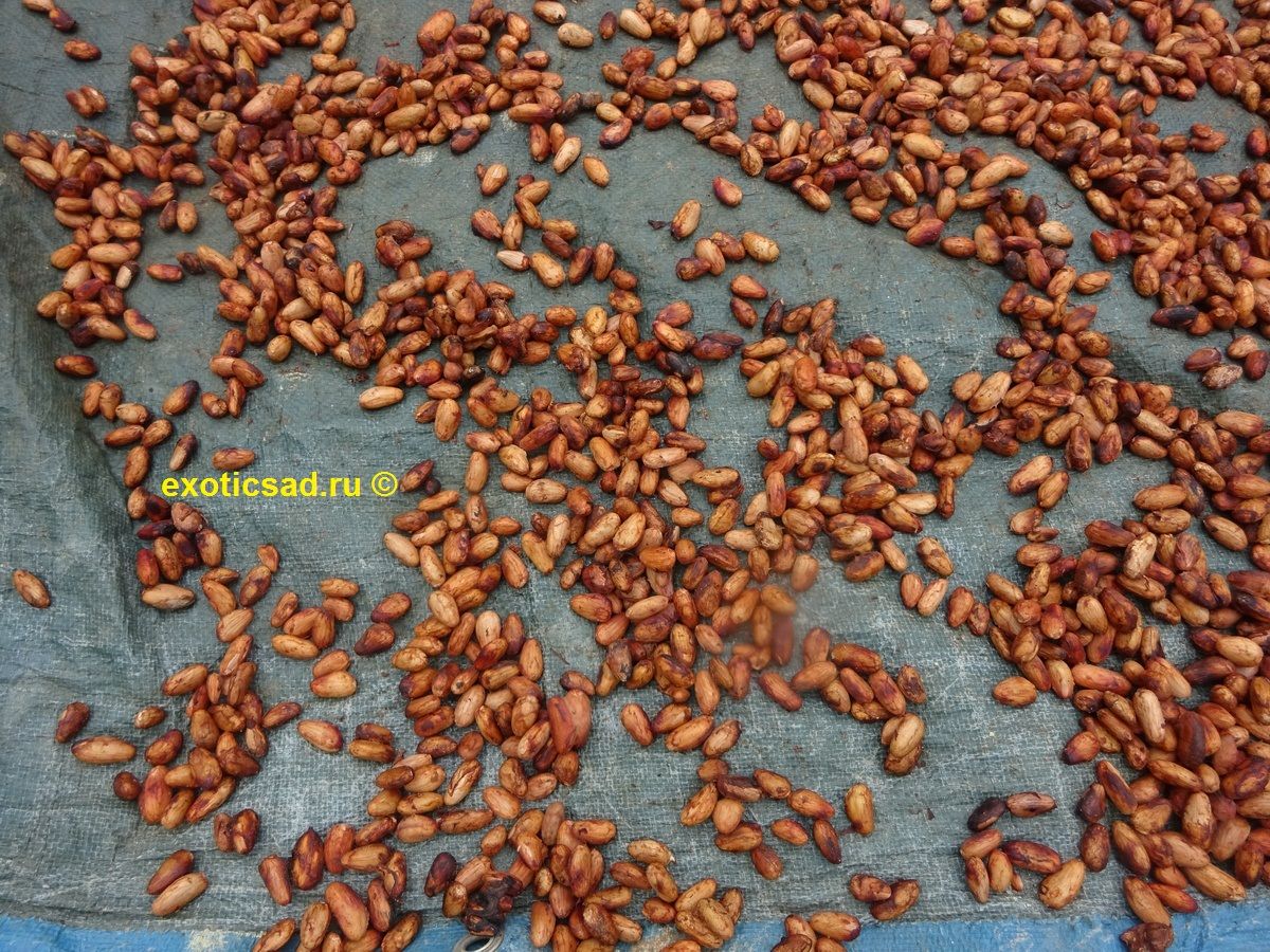 Для производства шоколада семена (какао-бобы) высушивают и перерабатывают в порошок или масло.
